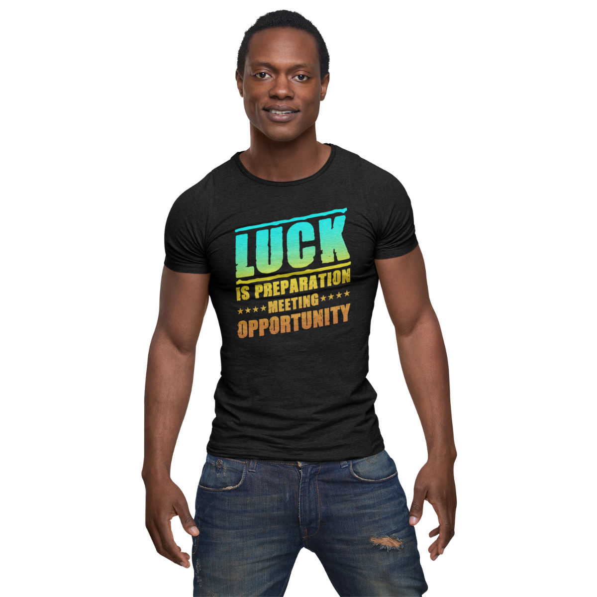 The Luck Is Preparation Meeting Opportunity T-Shirt delivers a stylish graphic, printed on the front of a soft, lightweight, comfortable shirt. Made from combed cotton for an authentic feel, this shirt makes sure you look good and feel good.