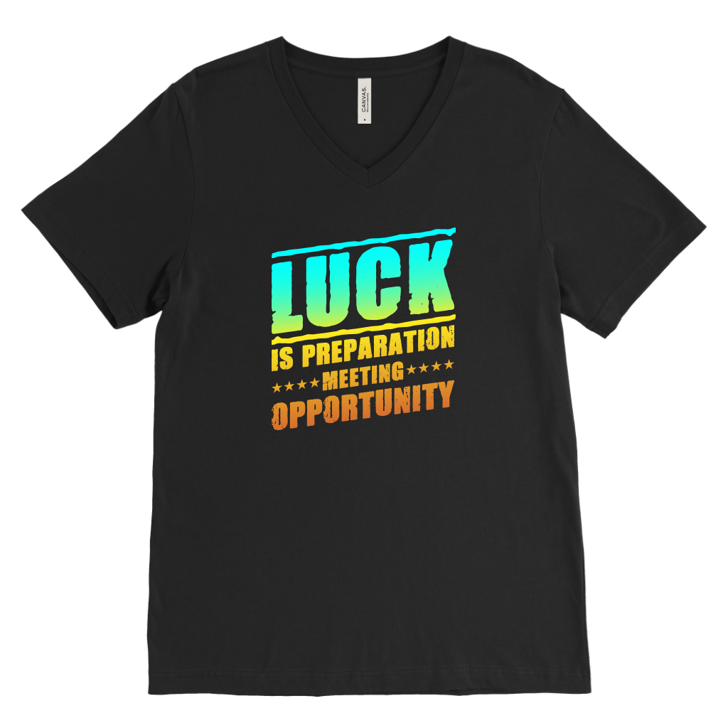 The Luck Is Preparation Meeting Opportunity v-neck shirt delivers a stylish graphic printed on the front of a soft, lightweight shirt. Made with 100% combed ring-spun cotton, it has a retail fit that is sure to feel great while you are succeeding.